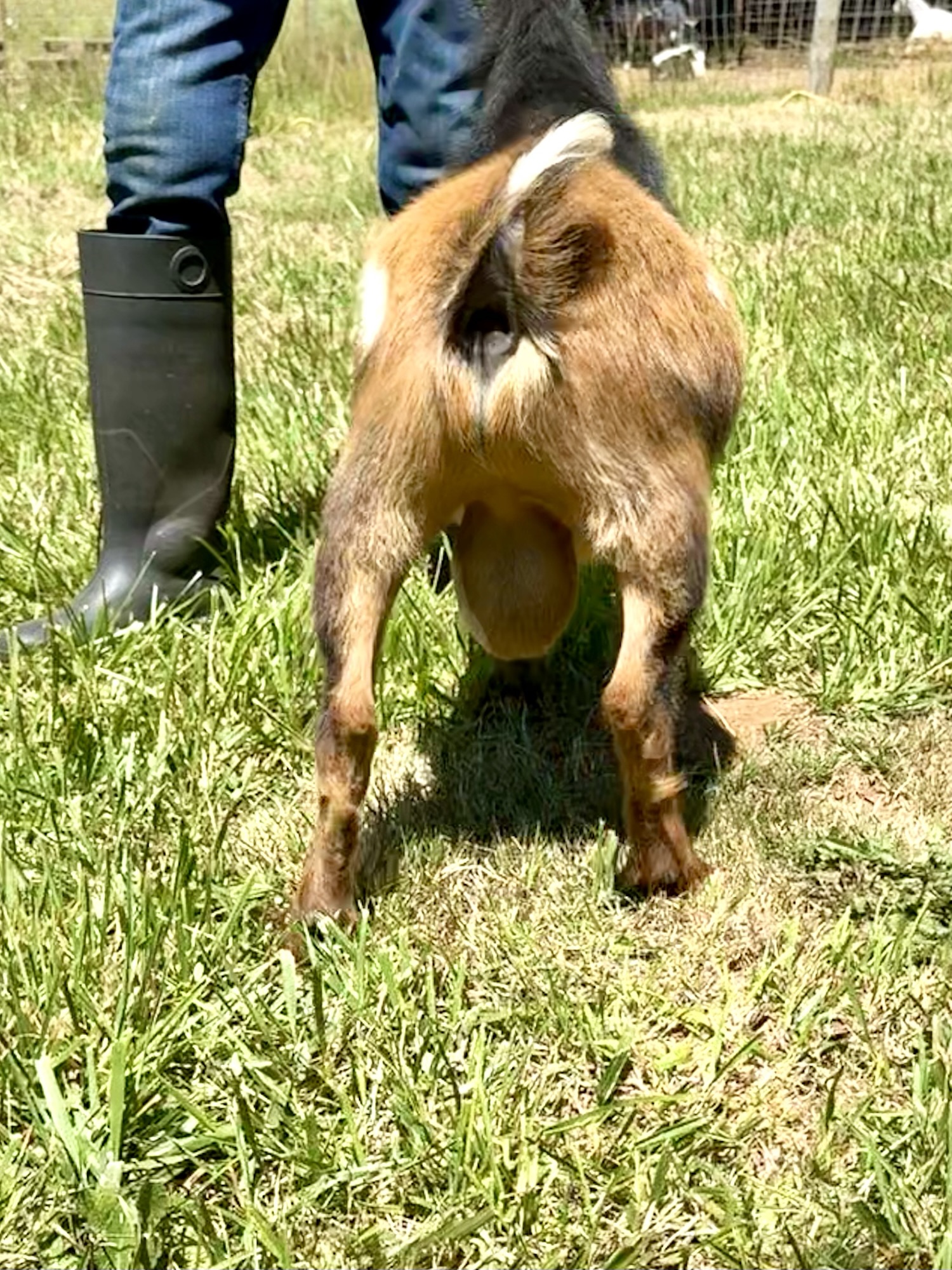 In my search for a new herdsire I started with the ELITE doe list – moving down the list and researching all the does that are at the top, I came across Bridgeport Farms DC Tiffany 7*M (ELITE) VEEE91 – a beautiful and productive doe with a great mammary and teats that would make a hand milker swoon. I also checked out her dam, Noall’s Ark Caprice Des Dieux (breed leader), but given that she is a Redstone Darkstar granddaughter and was bred to a Springwater buck, her buckling would already be fairly well related to both Shep and Gitarzan – but Tiffany was bred to the hunkiest of bucks from lines that could really add something special to my herd. Dragonfly BHH Quill.
