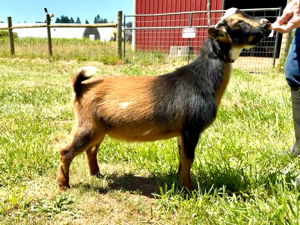 Springwater DC Mud Pie (4*M) EEEV90 x Bridgeport Farms Q’s Nighthawk Confirmed bred by ultrasound (3-4 kids expected) – Due Feb 5-7, 2026 planned pedigree Muddy 2025 2025 Bridgeport Farms DC Tiffany 7*M (PC: Bridgeport Farms) Sire, Dragonfly BHH Quill. PC: Bridgeport Farms Share this: Click to share on X (Opens in new window) X Click to share on Facebook (Opens in new window) Facebook Like Loading...