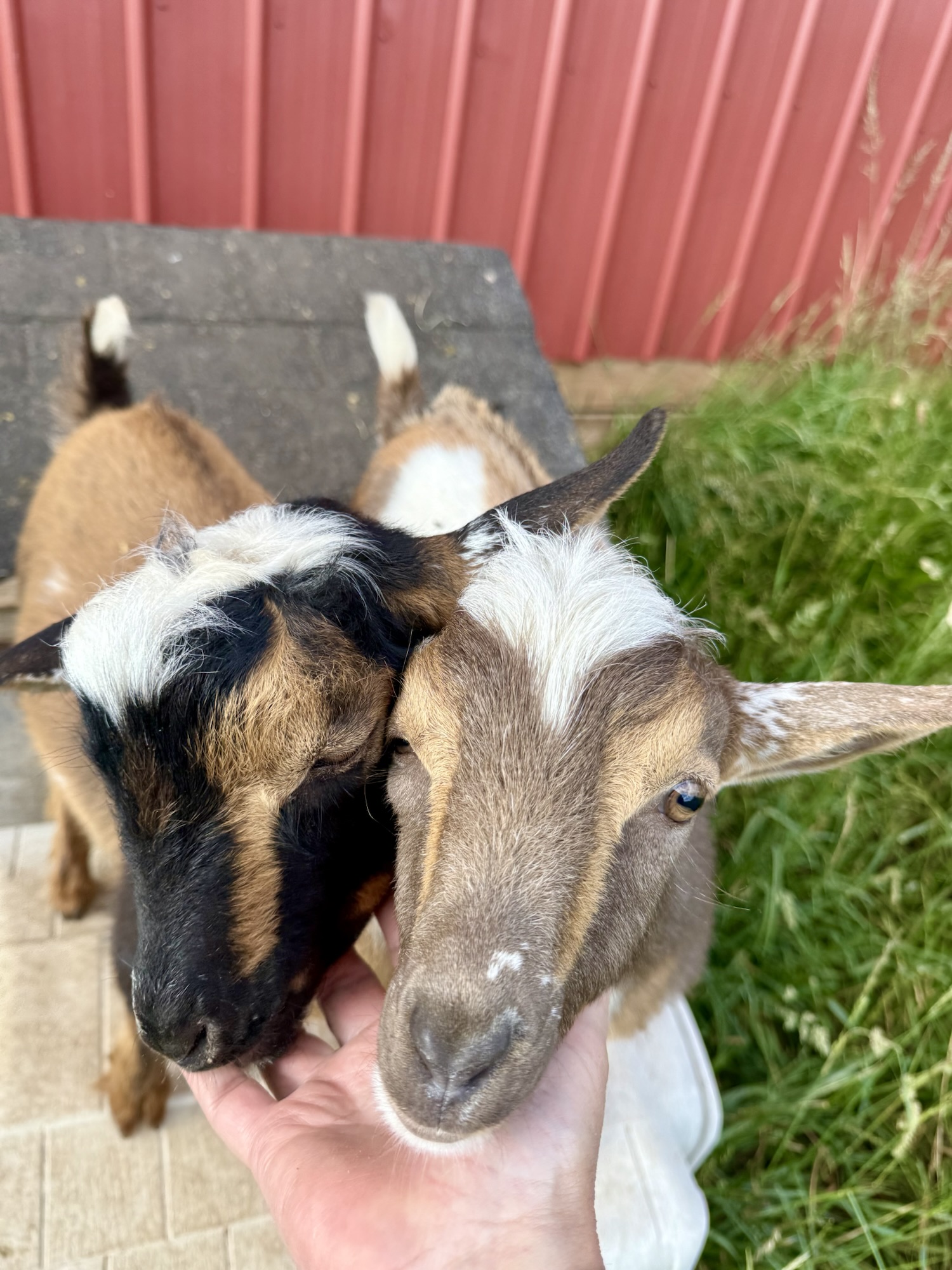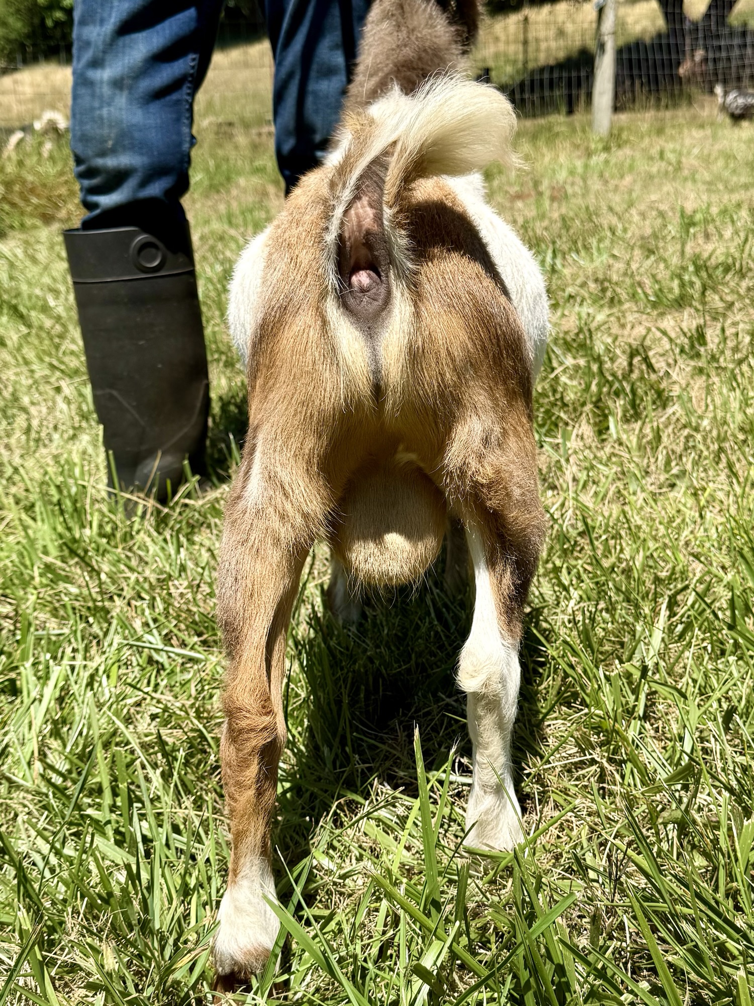 In my search for a new herdsire I came across 2 does that I just could not decide between – so I didn’t. I got a buckling from each! I’ve long admired TUA Farms incredibly productive goats – one of my favorites, GCH TUA Farms Song ofthe Honeybee 7*M EEEV91 caught my eye over and over, and while I am not usually a huge fan of gold goats (gold is so dominant it takes over a herd pretty quickly) she is the most beautiful shade of, well, honey, and has a beautiful strong, straight back and wonderful udder and attachments. I just love her. She was bred this year to Ilenesrascals SD Elipse *B… SD? As in “Saint Dismus?” um, yeah. He’s a son of Agape’s Prize Saint Dismus +*B (ELITE); his dam is the 2017 ADGA National Champion (and Best Udder) SGCH Old Mountain Farm Merriment, and is maternal sibling to the 2022 AND 2025 ADGA National Champion & Best Udder, Agape’s Prize French Quarter (EEEE92); and he was the 2nd place get of sire at 2025 Nationals. Just an incredible amount of potential from this little guy!